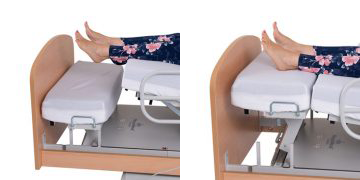 Der RotoFlex® kann optional mit einem höhenverstellbaren Fußteil erweitert werden. Weil der Auflagedruck des Fersenbereichs individuell angepasst werden kann, ist das höhenverstellbare Fußteil zur wirksamen Dekubitusprophylaxe geeignet. Außerdem bietet die Erweiterung weitere Vorteile: